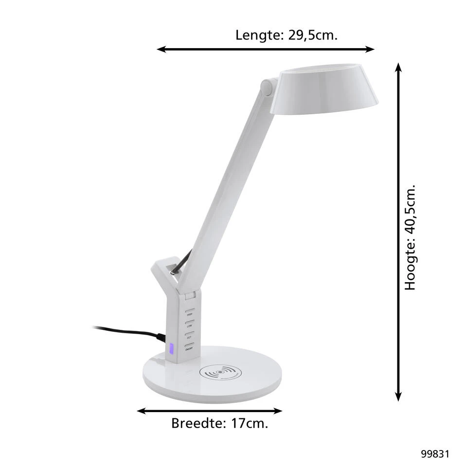 Een lamp én draadloze telefoonoplader in één ontwerp, dat is tafellamp Banderalo van EGLO. Deze strakke lamp heeft een geïntegreerde Qi lader voor je smartphone. Deze lamp is ideaal om jouw interieur een strak en stoer tintje te geven. Tafellamp Banderalo is door zijn witte kleur eenvoudig toepasbaar in ieder interieur. Je schakelt Banderalo aan en uit via een aanraakdimmer. Creëer op elk moment de juiste sfeer met deze dimbare lamp.