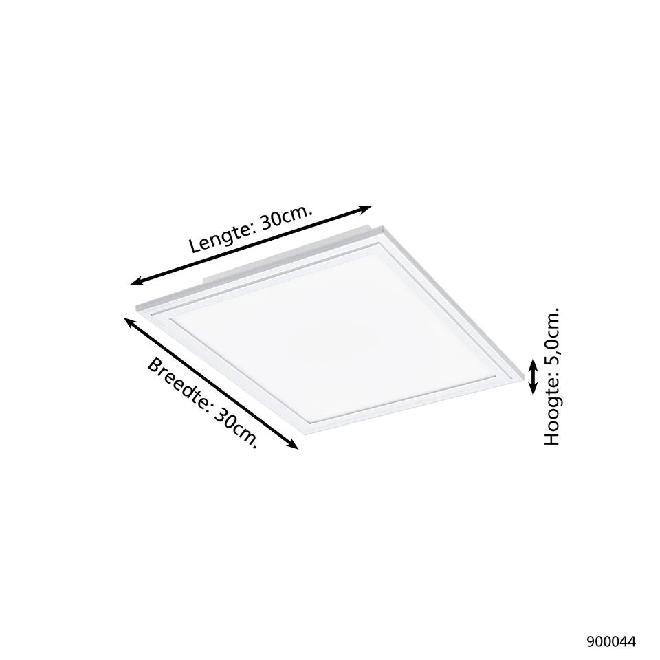 • Strakke plafondlamp van H 5 x L 30 x B 30 cm