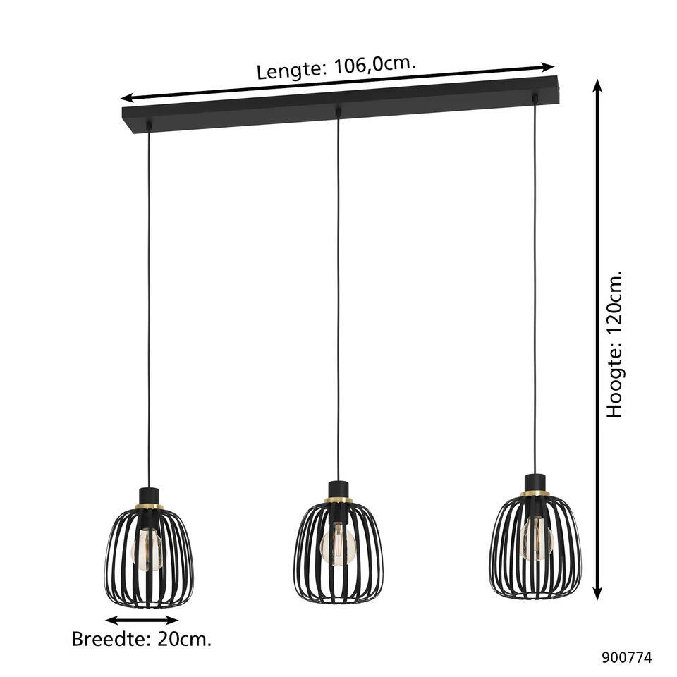• Industriële hanglamp van H 120 x L 106 x B 20 cm