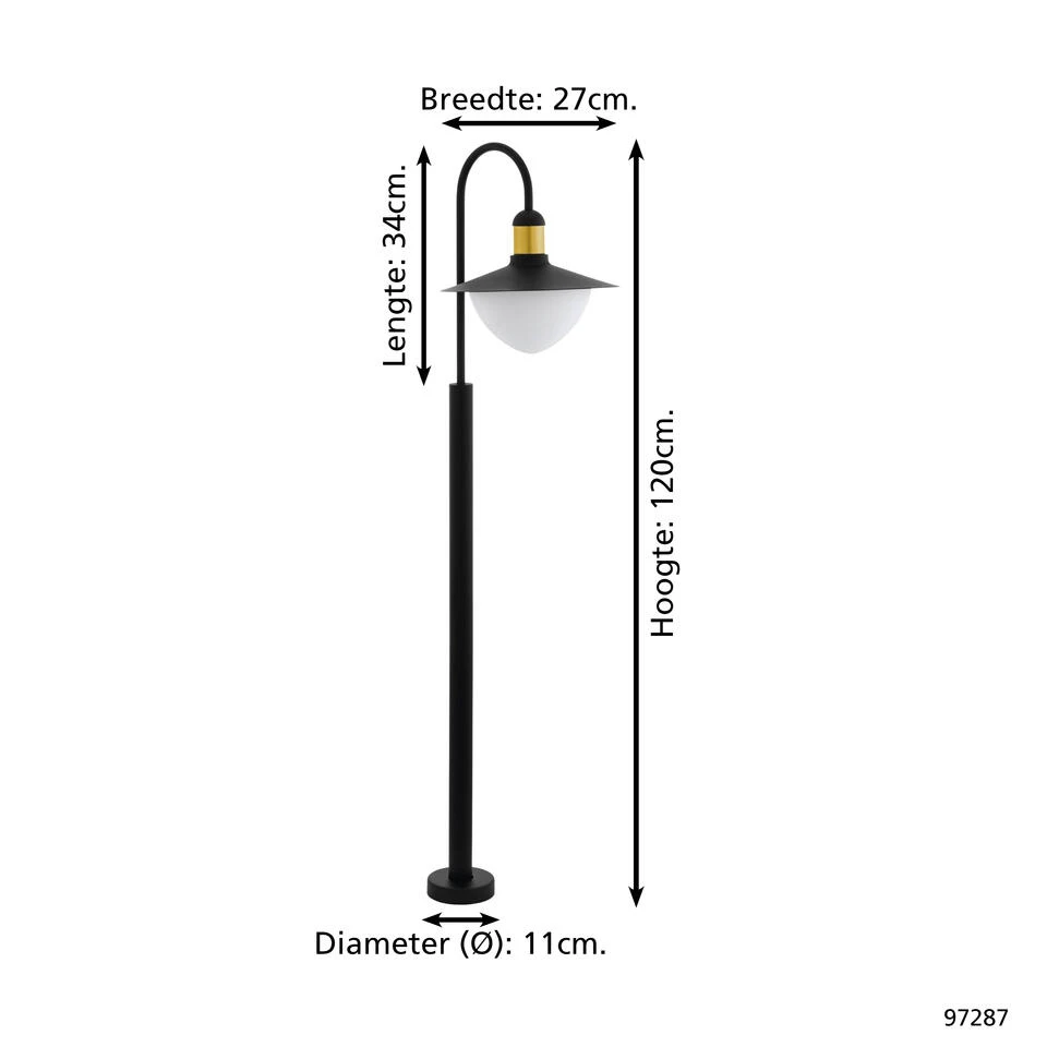 Deze staande lamp van EGLO, genaamd Sirmione, maakt jouw tuin helemaal af met zijn zwart met goudkleurige look. Zeker in een moderne tuin staat deze lamp prachtig. Het elegante ontwerp zorgt voor een mooi design. Vloerlamp Sirmione is toepasbaar bij de voordeur, langs de buitengevel of op het terras.
