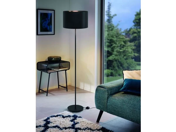 Vloerlamp Maserlo 1 is de vernieuwde versie van de populaire Maserlo verlichting van Eglo, beschikbaar in diverse kleuren en uitvoeringen. Deze staanlamp is gemaakt van zwart staal, met een stoffen lampenkap. Zo heeft deze vloerlamp een stoer uiterlijk met een zacht kantje! Een perfecte sfeermaker voor gezellige avondjes. Ook beschikbaar als hanglamp en tafellamp.