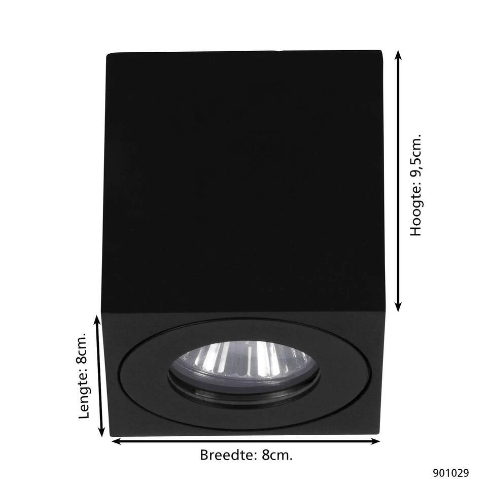 • Strakke plafondlamp van H 9,5 x L 8 x B 8 cm