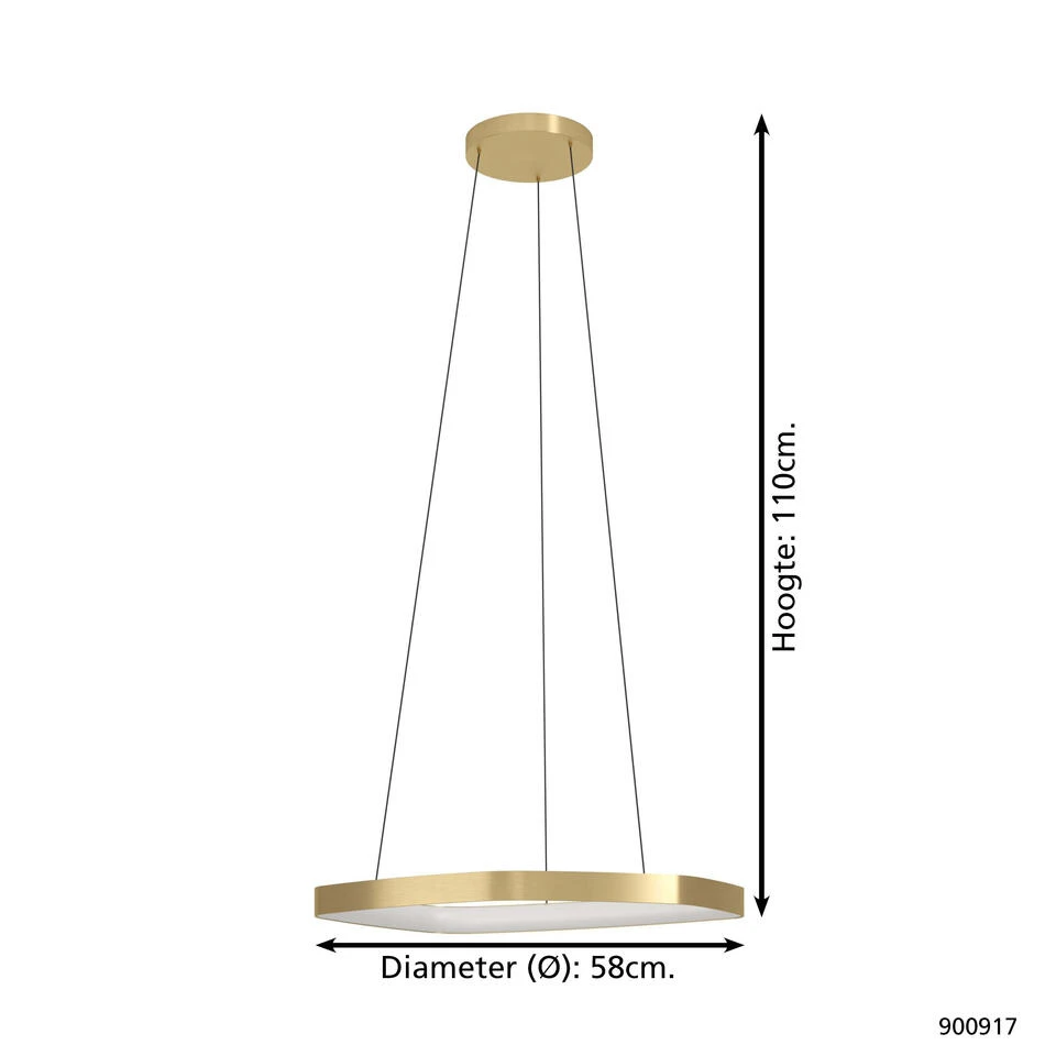 Hanglamp Vallerosa van EGLO is met zijn matte ontwerp een echt plaatje! Deze goudkleurige lamp is niet alleen functioneel maar ook nog eens heel sfeervol. Hanglamp Vallerosa is een echte eyecatcher in elke woon- en/of werkruimte. Maak jouw moderne interieur helemaal compleet met deze lamp. De hoogte van de lamp kun je zelf bepalen tot maximaal 110 cm. Je past eenvoudig de hoogte van de draden aan voor je Vallerosa aan het plafond hangt.