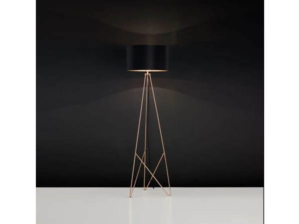 De Eglo Camporale vloerlamp is een moderne vloerlamp met een metaaldraad uit koper of messing, en een zwarte lampenkap. Het resultaat is een hedendaagse vloerlamp met een uniek design. Deze mooie staanlamp vormt een prachtige blikvanger in je woonkamer, en zorgt voor de juiste sfeer.