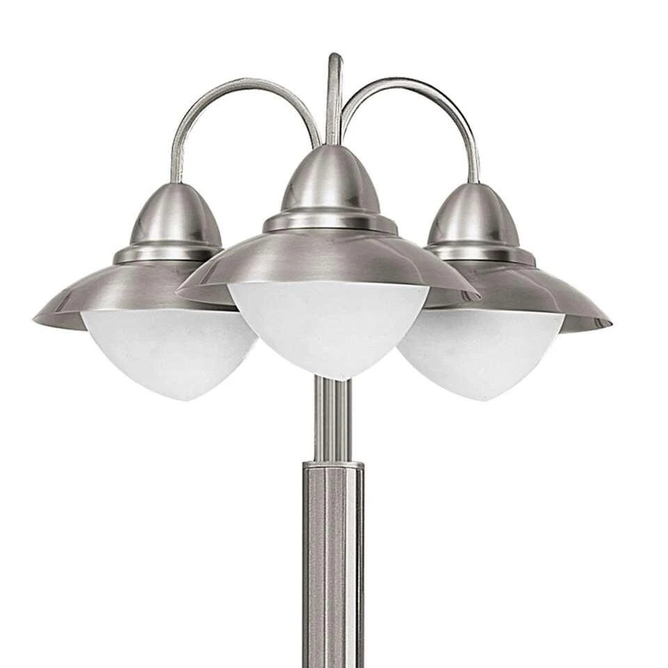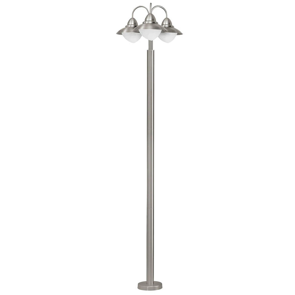 EGLO vloerlamp Sidney is een tuinlamp met klassieke vormen in een modern jasje. De 220 cm hoge lantaarn heeft een kap waardoor het licht alleen naar beneden schijnt. De ronde vormen kleden lamp Sidney af. Lamp Sidney is vekrijgbaar als wand- en vloerlamp in verschillende afmetingen. De lampen zijn tijdloos en eenvoudig te combineren met je bestaande tuinaccessoires. Alle lampen zijn voorzien van beschermingsgraad IP44 en compleet veilig verklaard. De behuizing van roestvrijstaal behoudt nog jaren zijn luxe karakter en uitstraling!